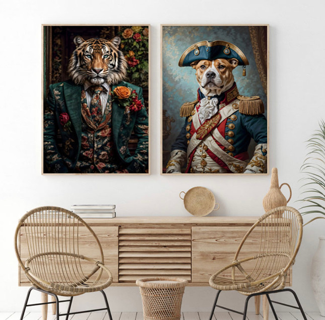 تابلو طرح ببر و سگ (دیجیتال آرت)